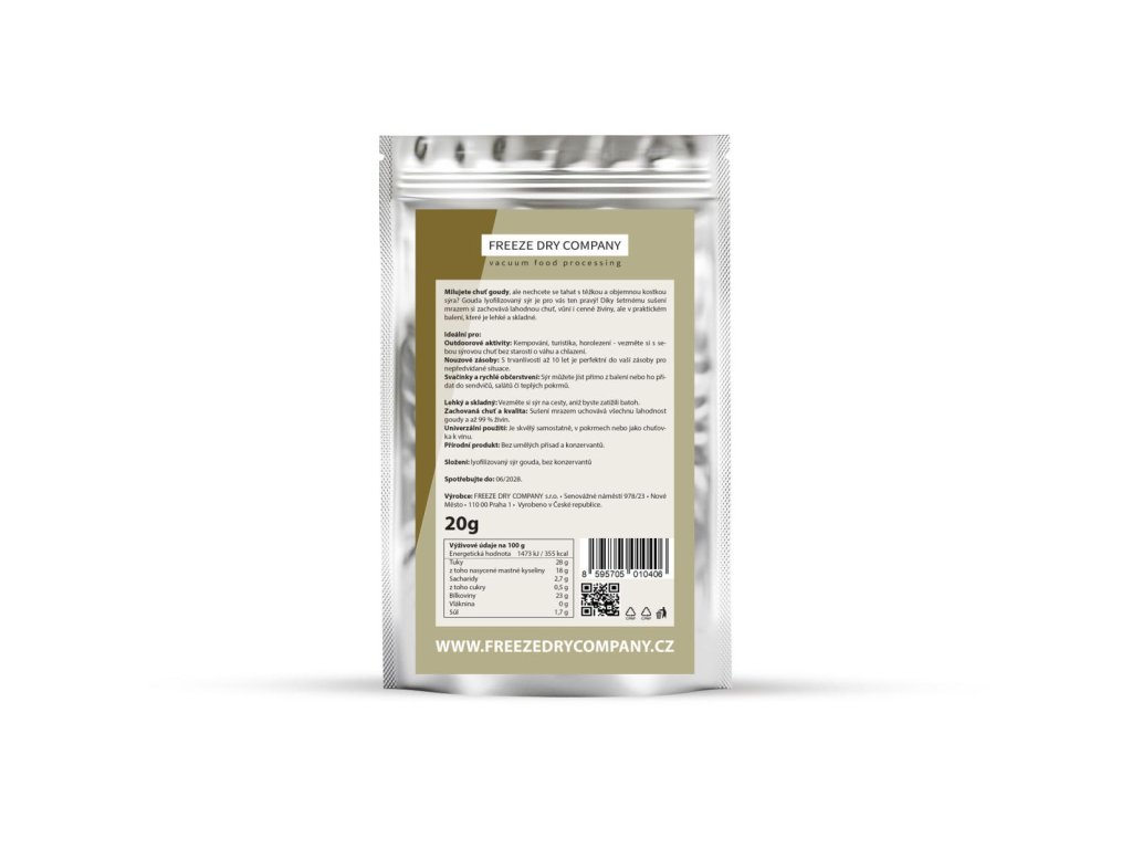 Lyofilizovaný sýr gouda je plný bohaté, jemně nasládlé chuti, která vás ohromí křupavou texturou.