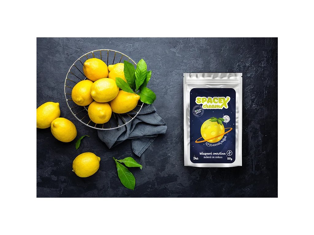 Složení: Lyofilizovaný jogurt (mléko, smetana, sušené mléko, jogurtová a probiotická kultura), cukr, lyofilizovaný citron.