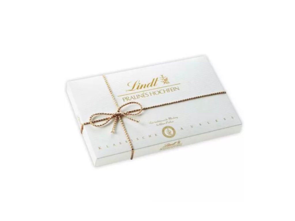 Luxusní dárková kazeta pralinek Lindt Hochfein přináší výběr těch nejlepších čokoládových kousků od švýcarských mistrů. Každá pralinka ukrývá harmonii krémových náplní, lahodné mléčné či hořké čokolády a křehkého oříškového aroma.